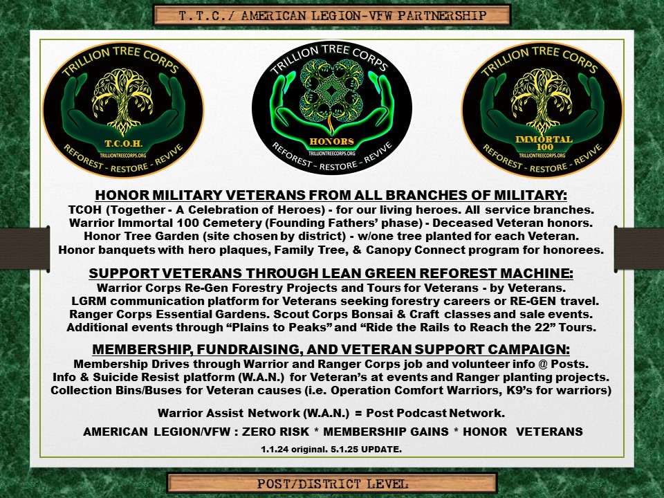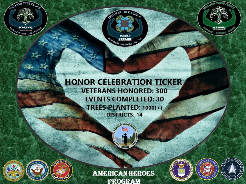 Honor Veterans across the entire U.S., both Living and Deceased, while employing, educating, and enriching our Veterans through Forestry and Gardening via our Brave, Ranger, Scout, & Warrior Corps.